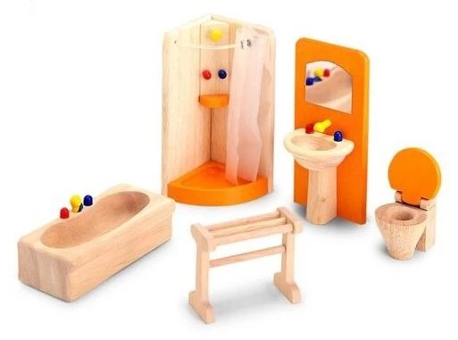 Complete badkamerinrichting voor het poppenhuis.