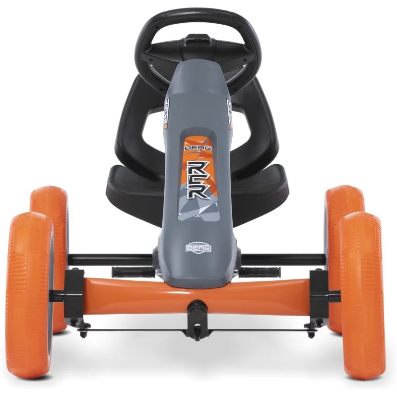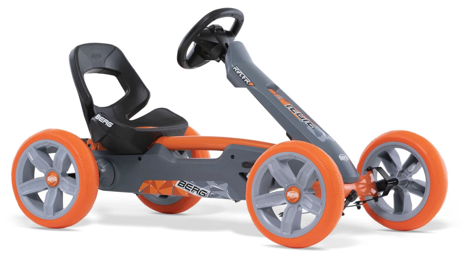 De lage zit, de stoere kuipstoel, de voorspoiler en de racebanden maken van deze Reppy een echte Racer! Het sportstuur is standaard uitgerust met échte soundbox. Deze soundbox heeft 4 verschillende tonen: remmen, toeteren, de motor starten en gas geven. De Reppy Racer heeft 4 nooit lek rakende EVA 10” inch banden, een verstelbare kuipstoel en een schommel-as.