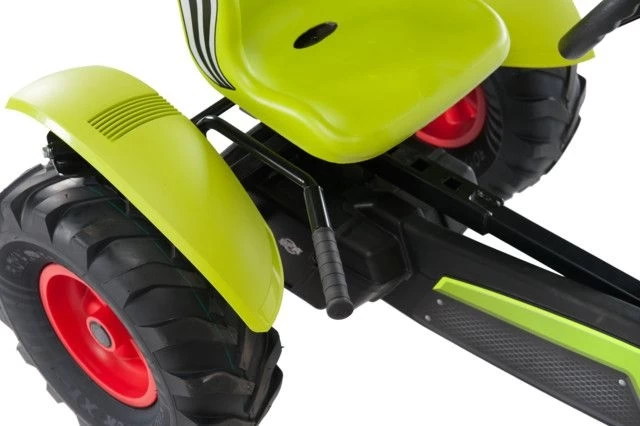 Je eigen tractor met CLAAS design! De grove banden en de uitlaat zorgen voor de ultieme ‘tractor look’. Door de indrukwekkende grove banden en de schommelas heb je optimaal veel grip in de modder en blijf je op oneffen terreinen stevig op de grond! Dankzij het unieke BFR-systeem heeft deze skelter een achteruittraprem en kun je makkelijk remmen voor ieder obstakel. Maak je skelter nog leuker met verschillende accessoires zoals een liftbakje, de palletvork of een rolbeugel met zwaailicht.