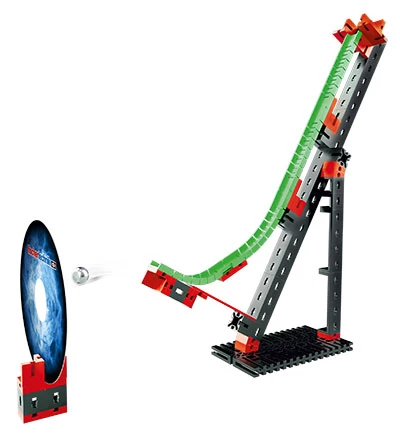 De low-cost knikkerbaan van fischertechnik! De bal versnelt, maakt snelheid in de barrage en vliegt door het vuurring – het is tijd voor actie! 70 onderdelen kunnen stap voor stap worden gebruikt om drie spannende modellen te bouwen: knikker hindernisbaan, springen en behendigheid spel. Ga naar www.fischertechnik.de/Dynamic-XS om de templates voor de verschillende games gratis te downloaden: doelschiten, ballen en “vuurring”. De constructie set kan worden gecombineerd en aangevuld worden met andere bouwdozen uit de PROFI Dynamic lijn. Laat de knikkers rollen!