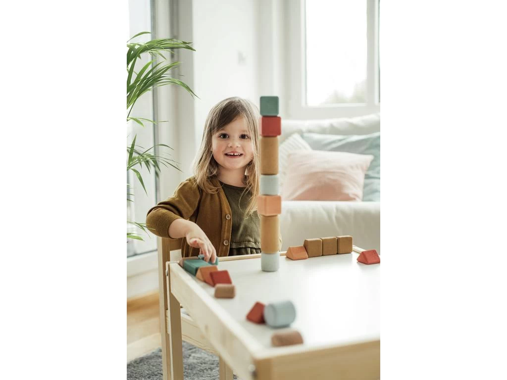 De speelblokken hebben afgeronde hoeken en een natuurlijk ruw oppervlak waardoor de stenen fijn aanvoelen en meer grip hebben. Ze stapelen dus eenvoudiger.