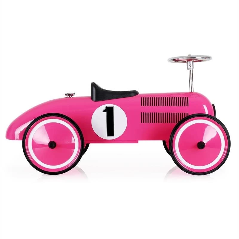 Deze prachtige Marilyn Retro Roller loopauto in fuchsia kleurstelling is gebaseerd op de stijl van de formule 1 wagens van vroeger. Super leuk voor jongens en meisjes. Urenlang speelplezier voor zowel binnen– als buiten gegarandeerd. De loopauto is voorzienvan metalen wielen en rubberen banden en een kunststof zitting. Leuk als verjaardagscadeau, maar ook heel leuk als woonaccessoire ! De loopauto is volledig van metaal en eenvoudig in elkaar te zetten en te monteren. Jouw kindje kan zó opstappen en karren maar!