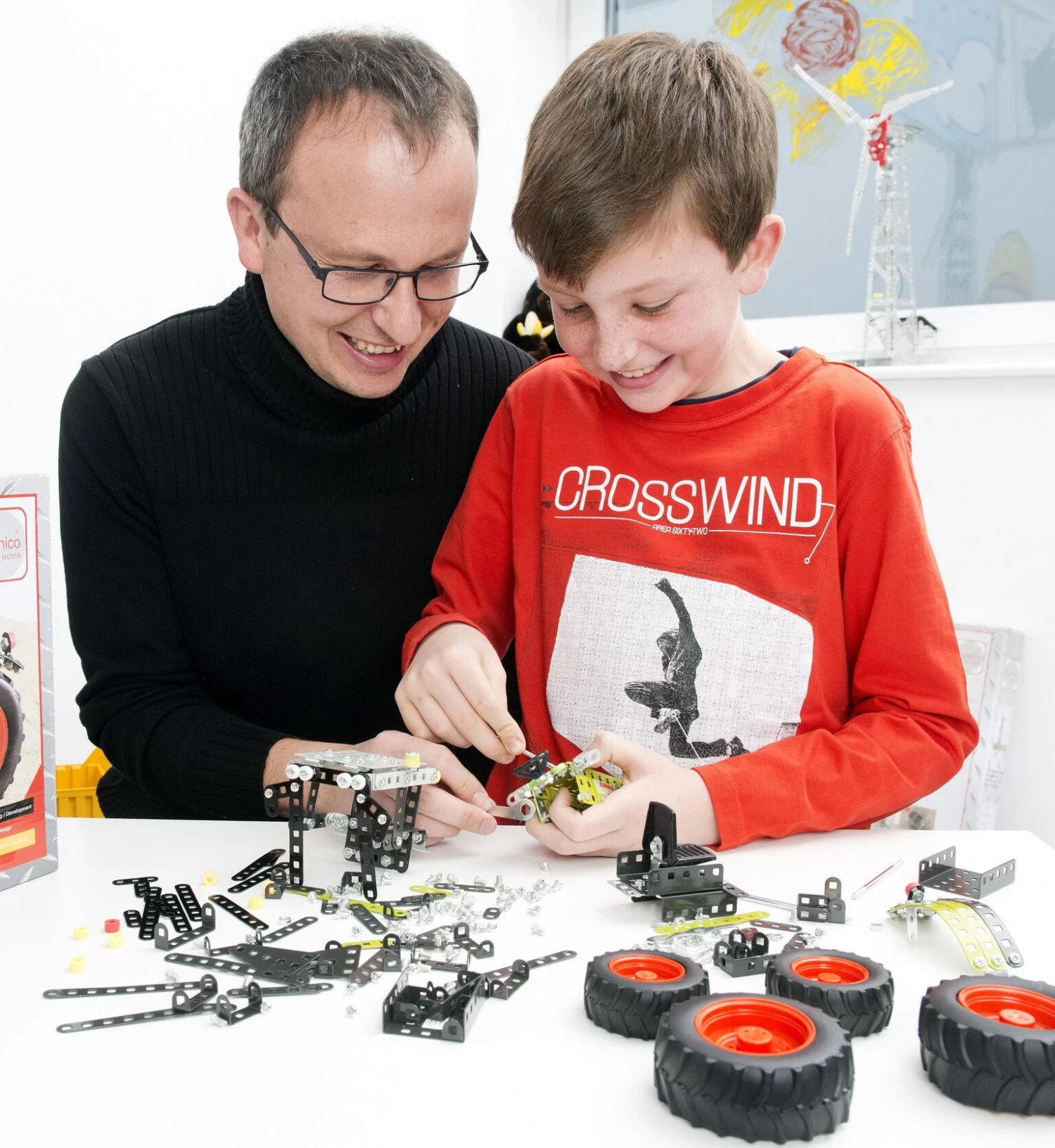 Bouwdoos met 759 onderdelen uit de Tronico Mini serie. Betreft de tractor Fendt 313 Vario met kipaanhangwagen.